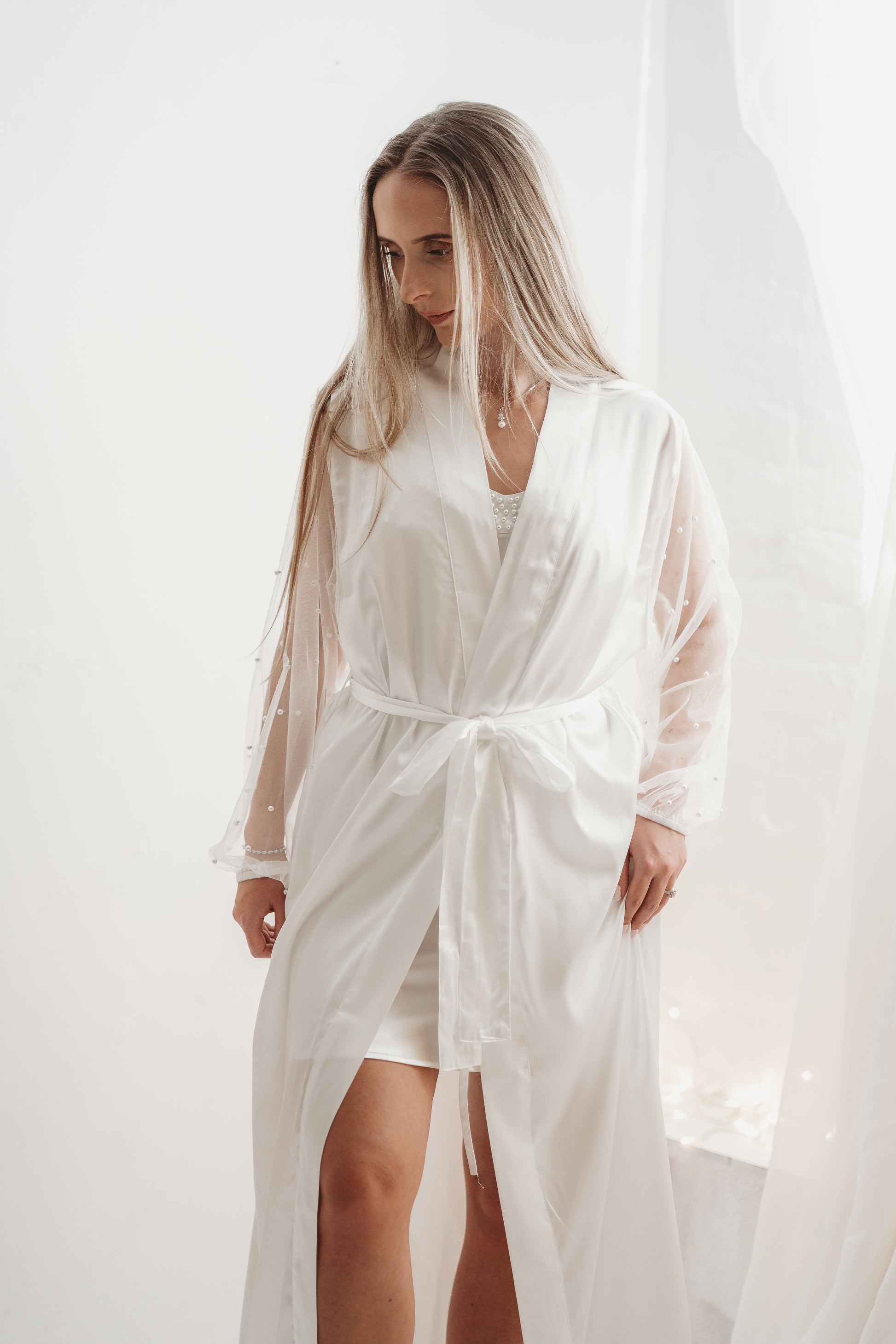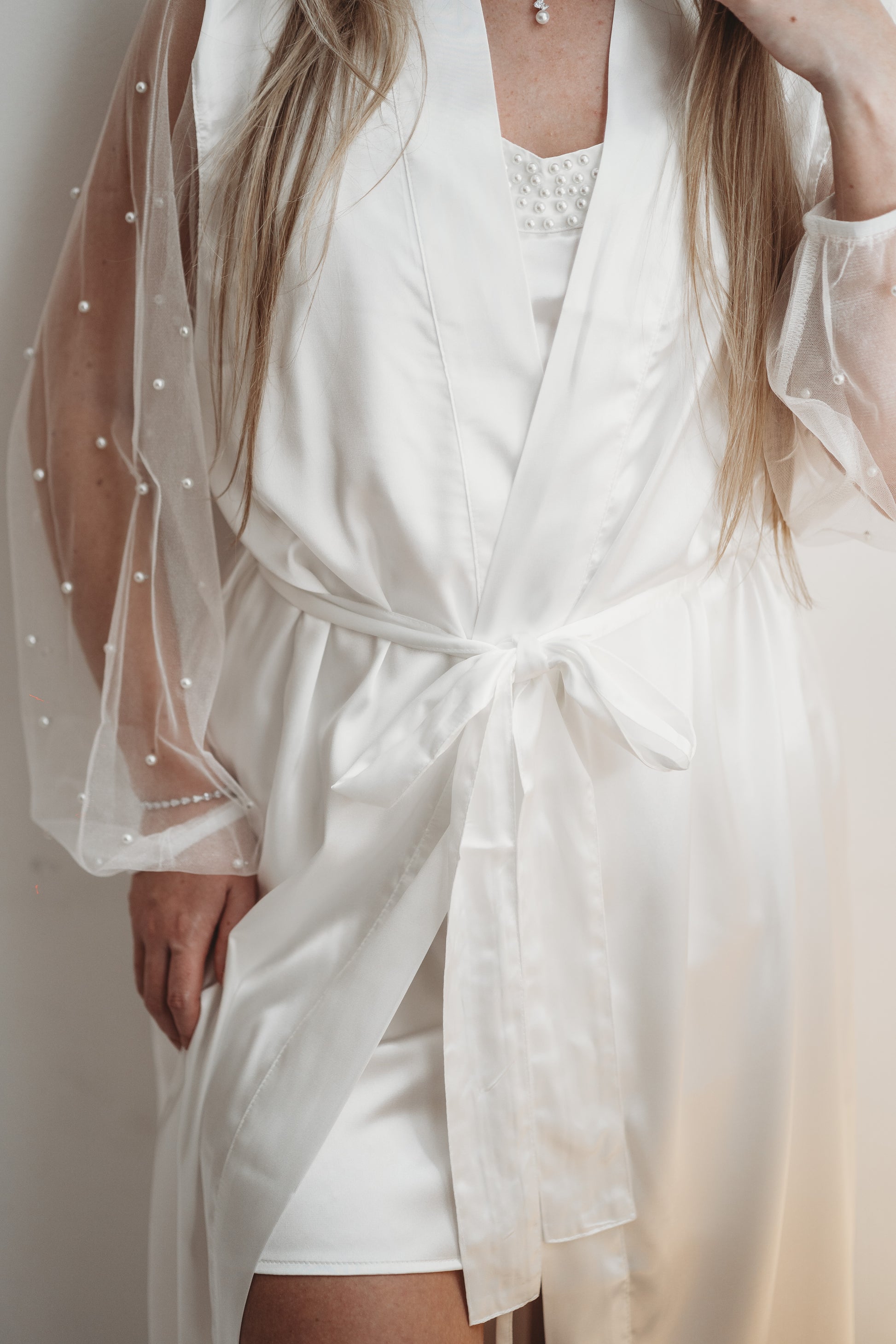 Pearl Sleeve Satin Bridal Robe