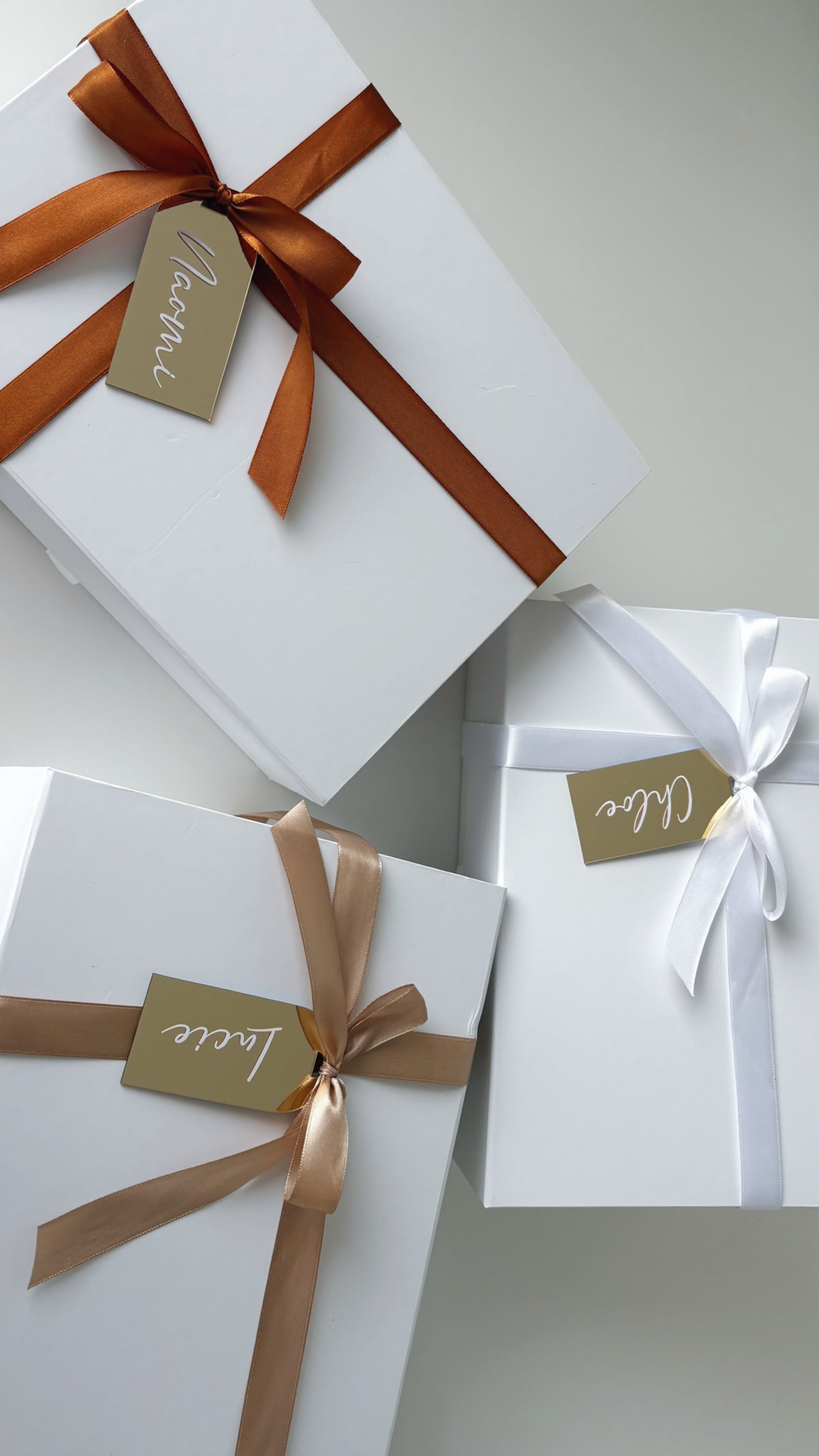 Each box is carefully crafted with a sturdy, high-quality structure and finished with a soft satin ribbon tied into a classic bow. The personalized name tag creates a thoughtful, bespoke detail your recipient will truly cherish.