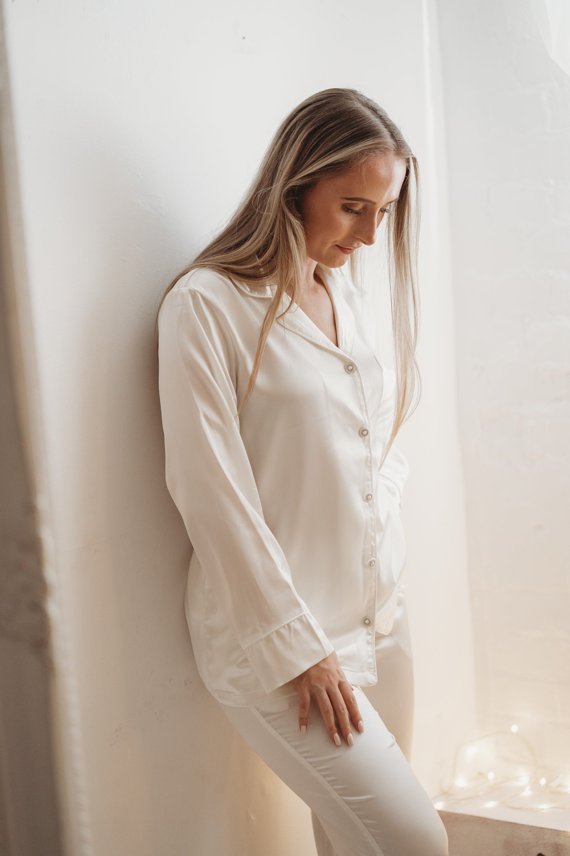 Our luxury white pyjamas are perfect look for the bride on the morning of her wedding.